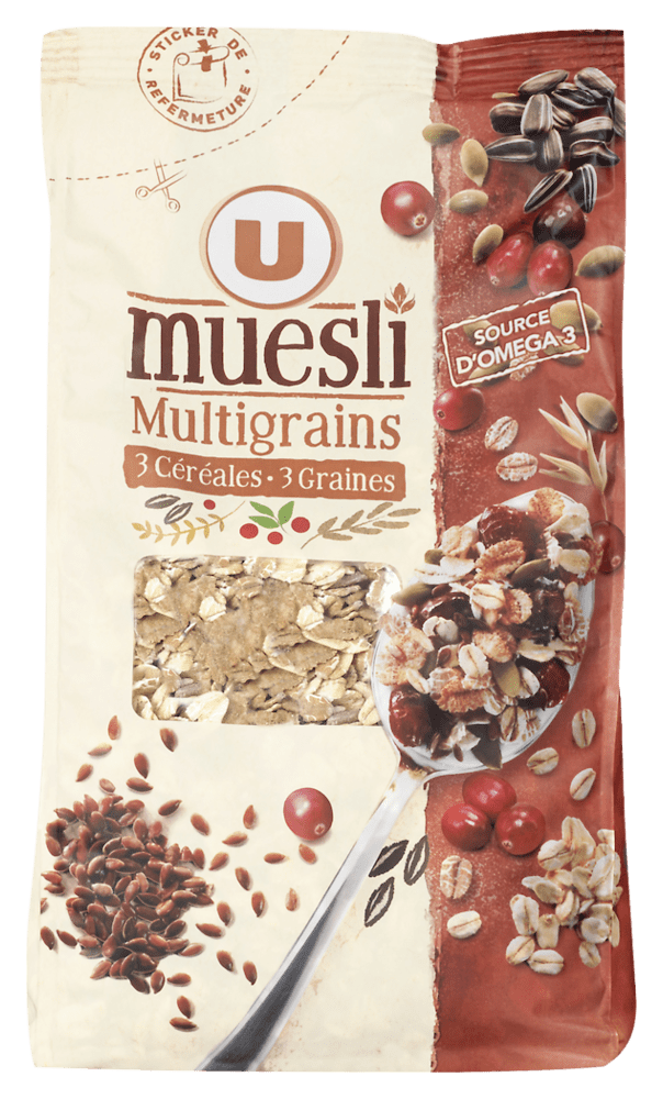 Muesli floconneux aux fruits et aux graines U paquet 500gMuesli floconneux aux fruits et aux graines U paquet 500g