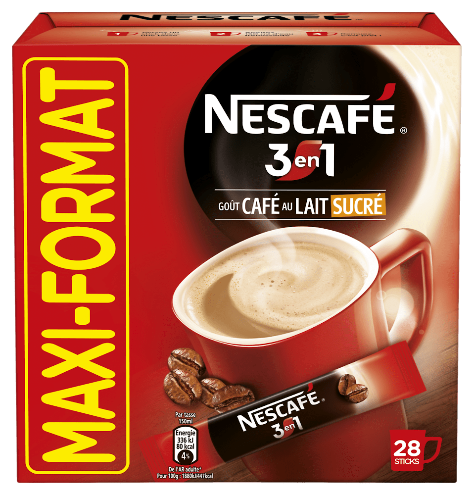 NESCAFE 3en1, Boisson au café, Boîte de 28 Sticks (18g chacun)NESCAFE 3en1, Boisson au café, Boîte de 28 Sticks (18g chacun)