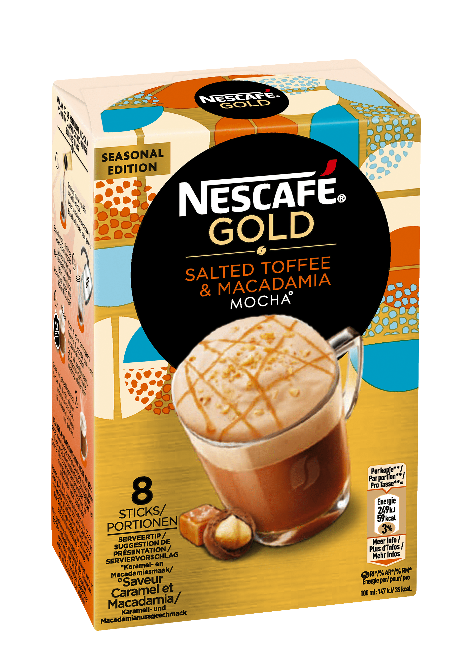 NESCAFE GOLD Caramel Salé et Macadamia sticks (8x14,6g)NESCAFE GOLD Caramel Salé et Macadamia sticks (8x14,6g)