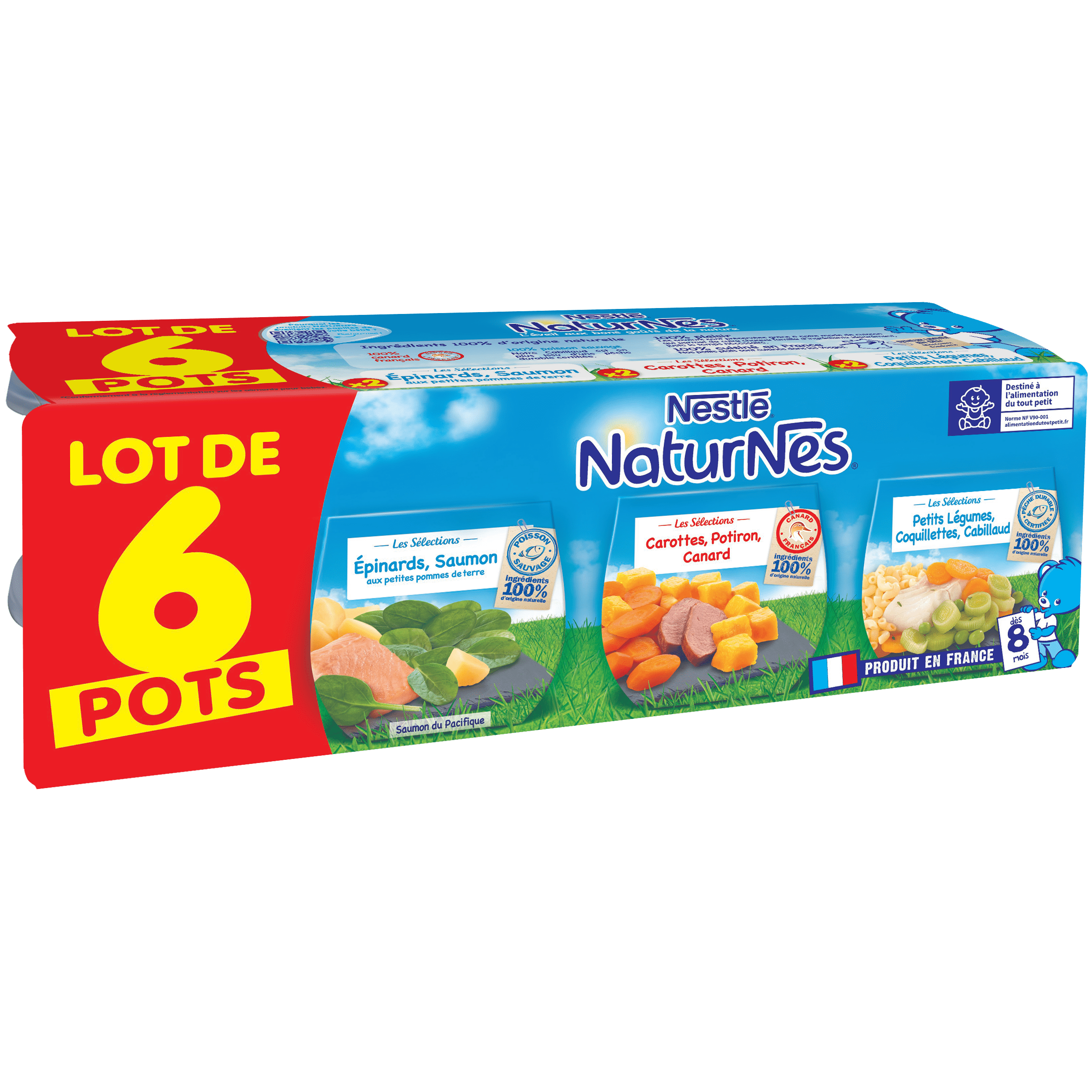NESTLE NATURNES Les Sélections Epinards Saumon, Carottes Potiron Canard, Petits légumes Coquillettes Cabillaud -6x200g -Dès 8 moisNESTLE NATURNES Les Sélections Epinards Saumon, Carottes Potiron Canard, Petits légumes Coquillettes Cabillaud -6x200g -Dès 8 mois