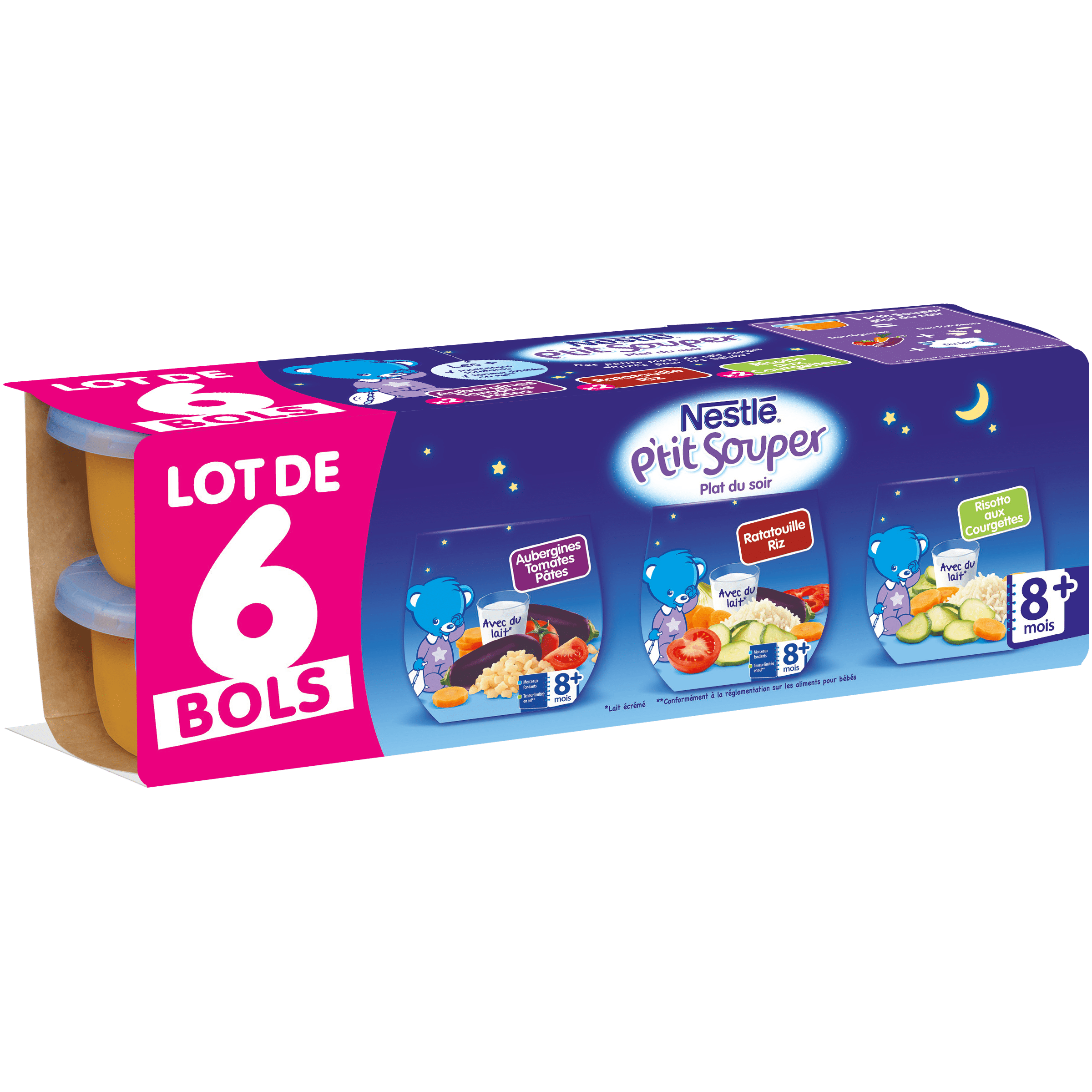 NESTLÉ P'TIT SOUPER Lot de 6 - Aubergines Tomates Pâtes - Ratatouille Riz - Risotto aux CourgettesNESTLÉ P'TIT SOUPER Lot de 6 - Aubergines Tomates Pâtes - Ratatouille Riz - Risotto aux Courgettes
