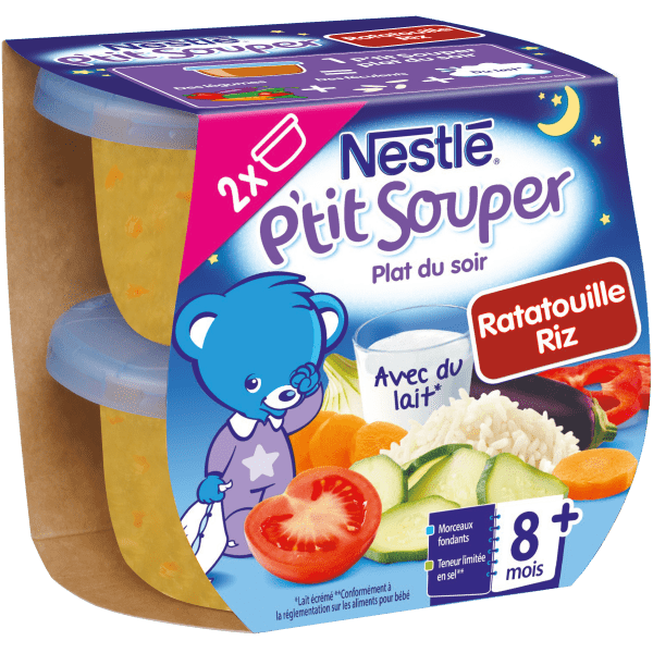 NESTLE P'TIT SOUPER Ratatouille Riz - 2 x 200g - Dès 8 moisNESTLE P'TIT SOUPER Ratatouille Riz - 2 x 200g - Dès 8 mois