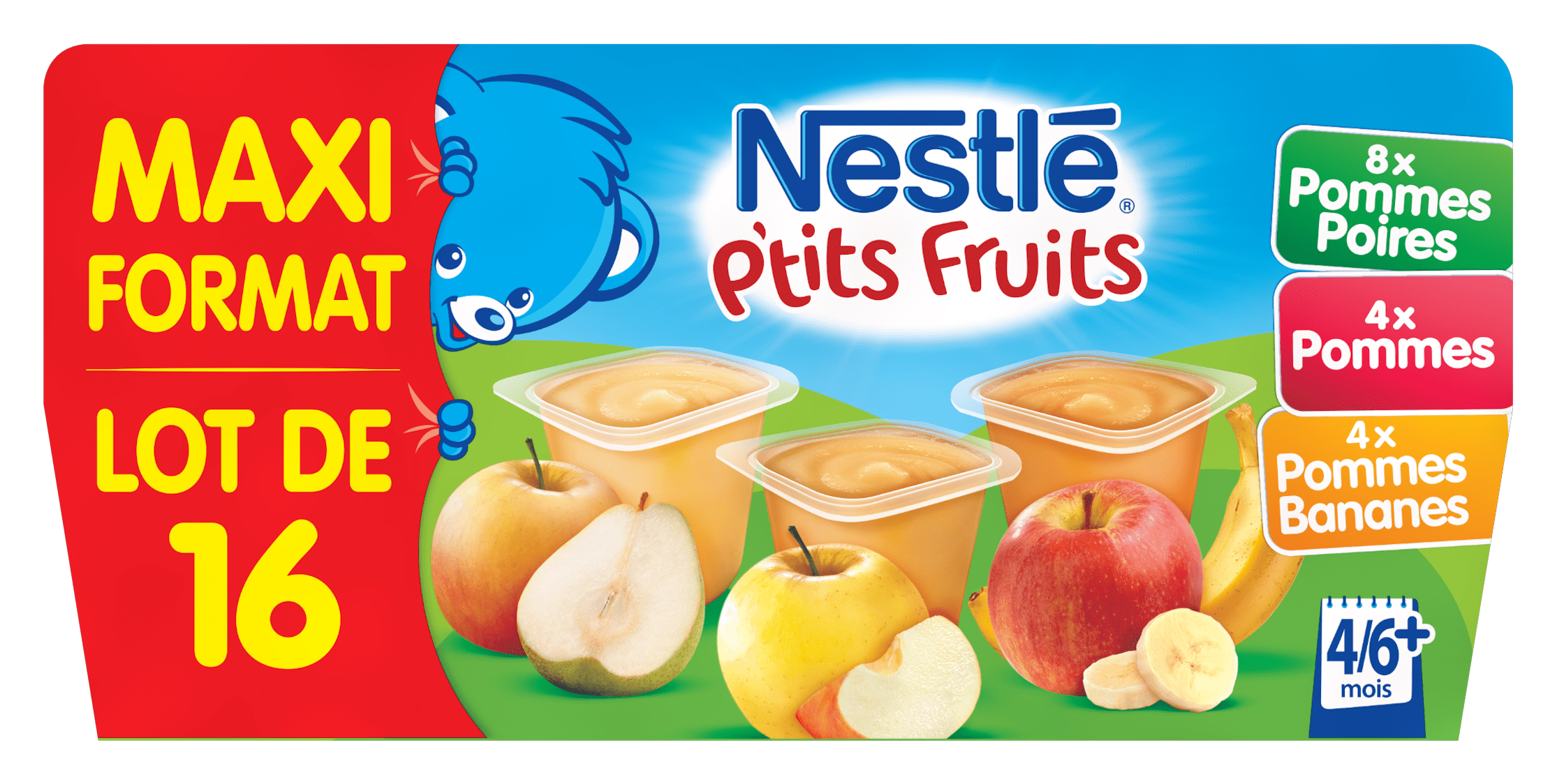 NESTLE P'TITS FRUITS Coupelles de fruits x16 : 8 Pommes Poires + 4 Pommes + 4 Pommes BananesNESTLE P'TITS FRUITS Coupelles de fruits x16 : 8 Pommes Poires + 4 Pommes + 4 Pommes Bananes