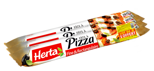 Pâtes à pizza fines rectangulaires HERTAPâtes à pizza fines rectangulaires HERTA