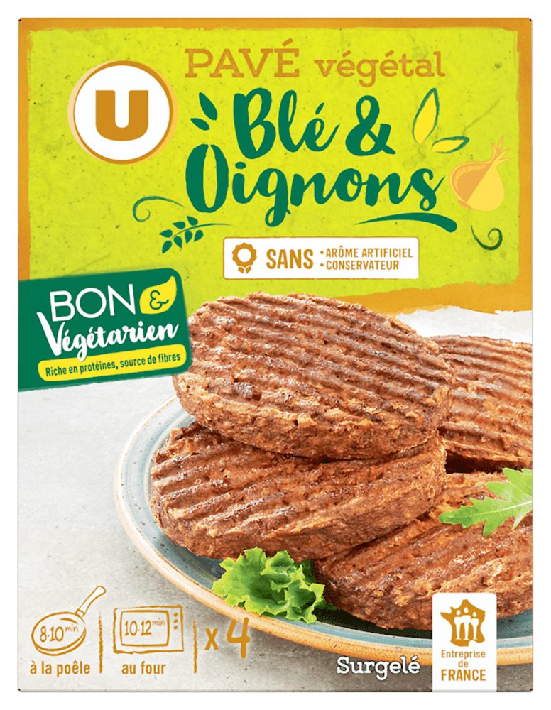 Pavé végétal blé oignons U BON ET VEGETARIEN 4x100gPavé végétal blé oignons U BON ET VEGETARIEN 4x100g