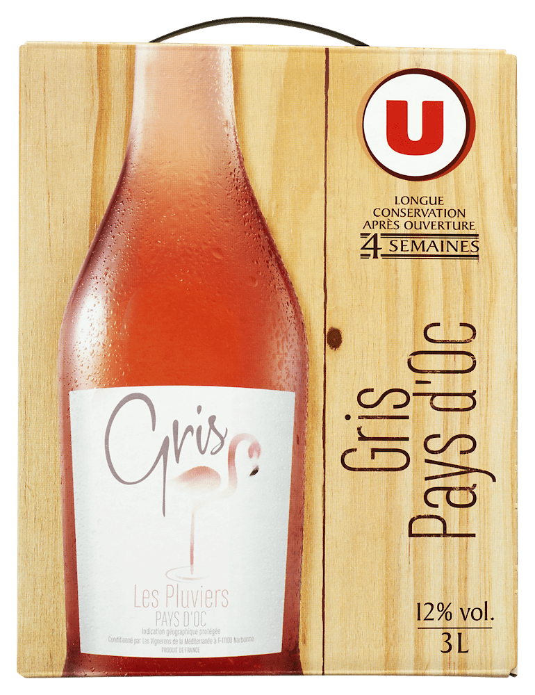 Pays d'Oc IGP rosé Gris Les Pluviers U bib 3 litresPays d'Oc IGP rosé Gris Les Pluviers U bib 3 litres
