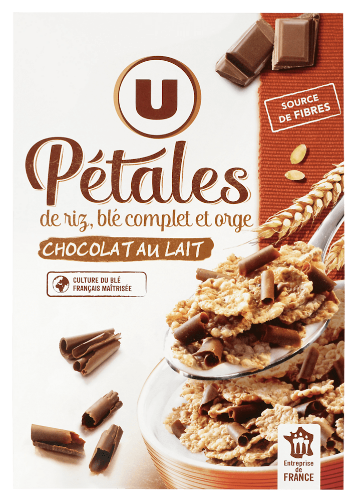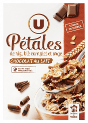 Pétales de riz et blé complet avec copeaux choco.lait U 550gPétales de riz et blé complet avec copeaux choco.lait U 550g