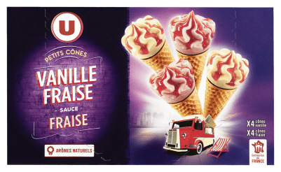 Petits cônes vanille-fraise U x8 344gPetits cônes vanille-fraise U x8 344g