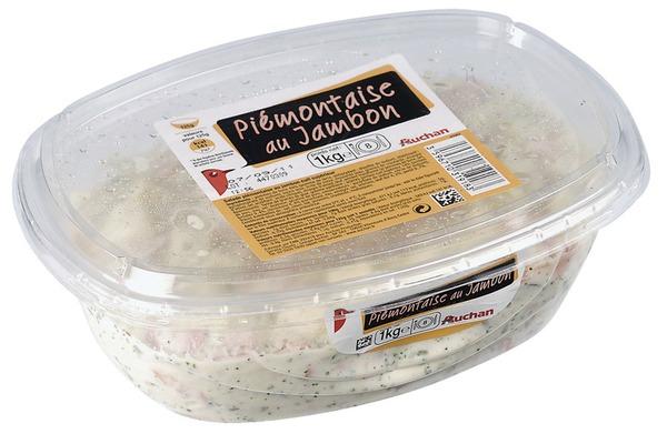 Pommes de terre 49% (dont antioxydant : disulfite de sodium),  jambon cuit supérieur 14% (jambon de porc 13%, eau, sel, dextrose, gélatine de porc, antioxydant : ascorbate de sodium, conservateur : nitrite de sodium), tomates 9%, eau, huile de colza, cornichons 4% (cornichons, vinaigre, sel, affermissant : chlorure de calcium, conservateur : disulfite de potassium), oeuf dur 4%, moutarde (eau, graines de moutarde, vinaigre d'alcool, sel), persil 0,7%, oeuf entier liquide pasteurisé salé, vinaigre d'alcool, amidon modifié de pommes de terre ; épaississants : gomme xanthane, gomme guar ; sel, arôme naturel de poivre.