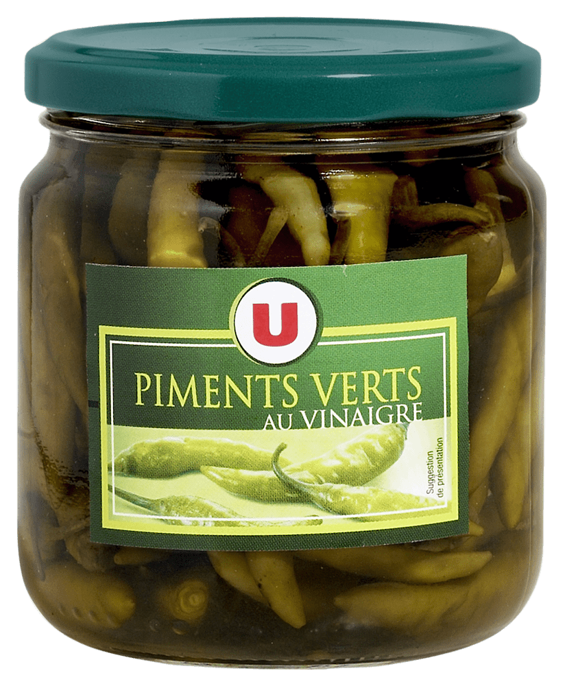 Piments verts au vinaigre U bocal 27cl 130gPiments verts au vinaigre U bocal 27cl 130g