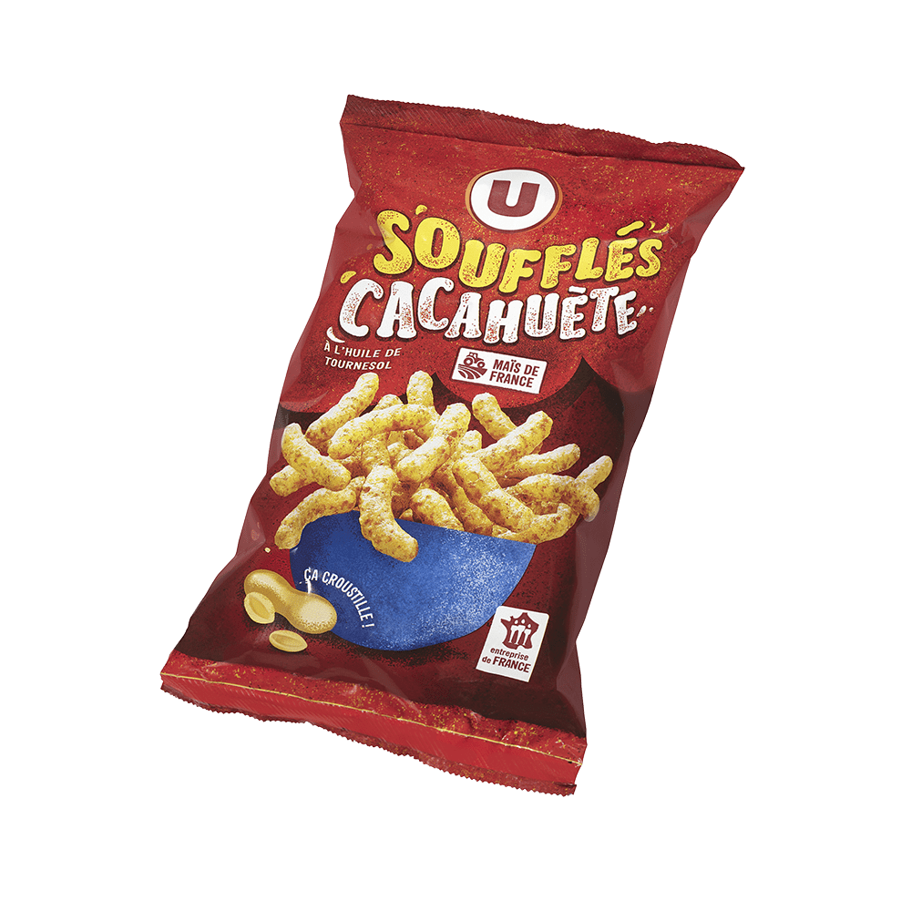 Produit soufflé à base de maïs à la cacahuèteProduit soufflé à base de maïs à la cacahuète