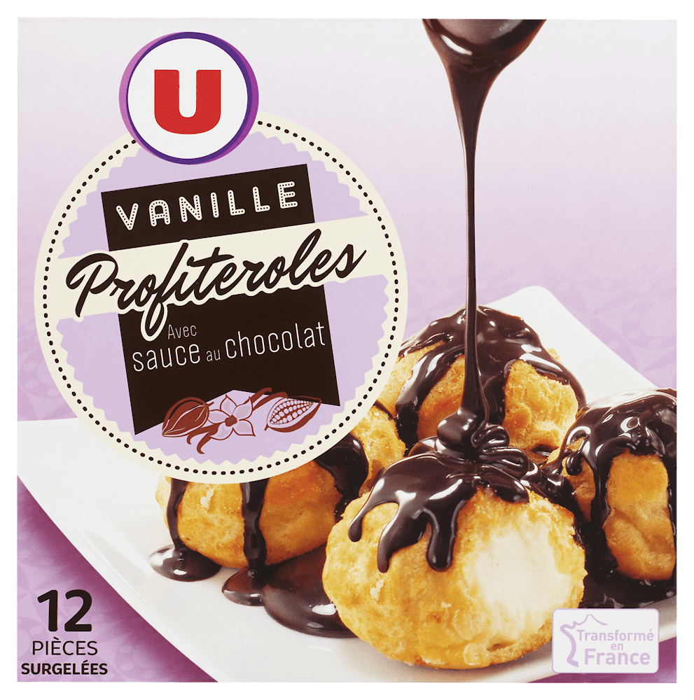 Profiteroles glace vanille sauce chocolat U x12 280gProfiteroles glace vanille sauce chocolat U x12 280g