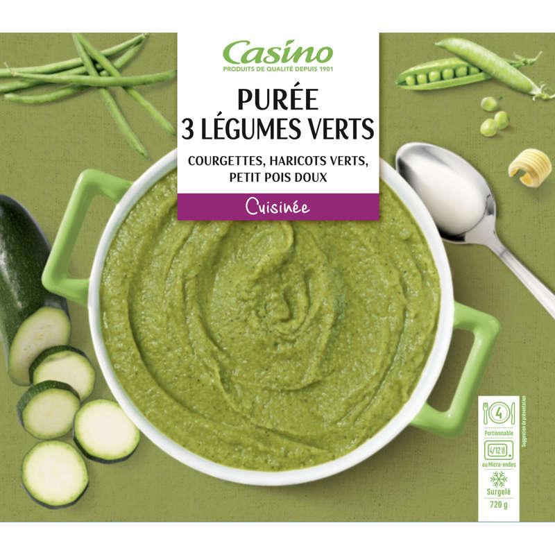 Purée 3 légumes verts cuisinée - Courgettes, haricots verts, petits pois douxPurée 3 légumes verts cuisinée - Courgettes, haricots verts, petits pois doux