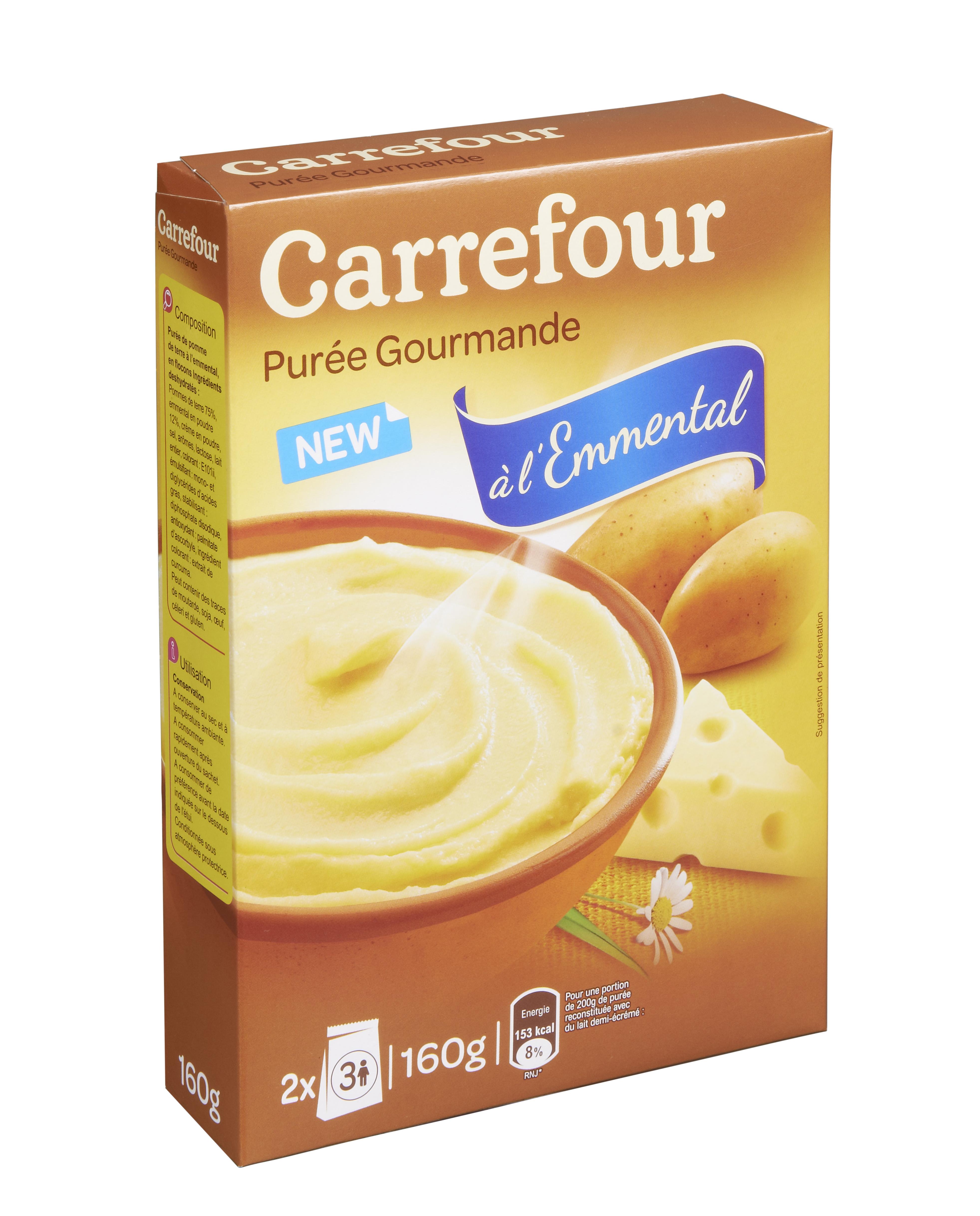 Ingrédients : Pommes de terre déshydratées 74%, emmental en poudre 12%, crème en poudre, sel, arômes (dont lactose), lactose , lait en poudre, émulsifiant : mono- et diglycérides d’acides gras, stabilisant : diphosphate disodique,antioxydant : esters d’acides gras de l’acide ascorbique, curcuma, extrait de curcuma