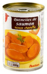 Quenelles de saumon avec morceaux de saumon fumé sauce crevetteQuenelles de saumon avec morceaux de saumon fumé sauce crevette