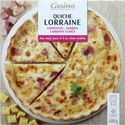 Quiche lorraine emmental, jambon lardons fumés aux oeufs frais et à la crème fraîcheQuiche lorraine emmental, jambon lardons fumés aux oeufs frais et à la crème fraîche