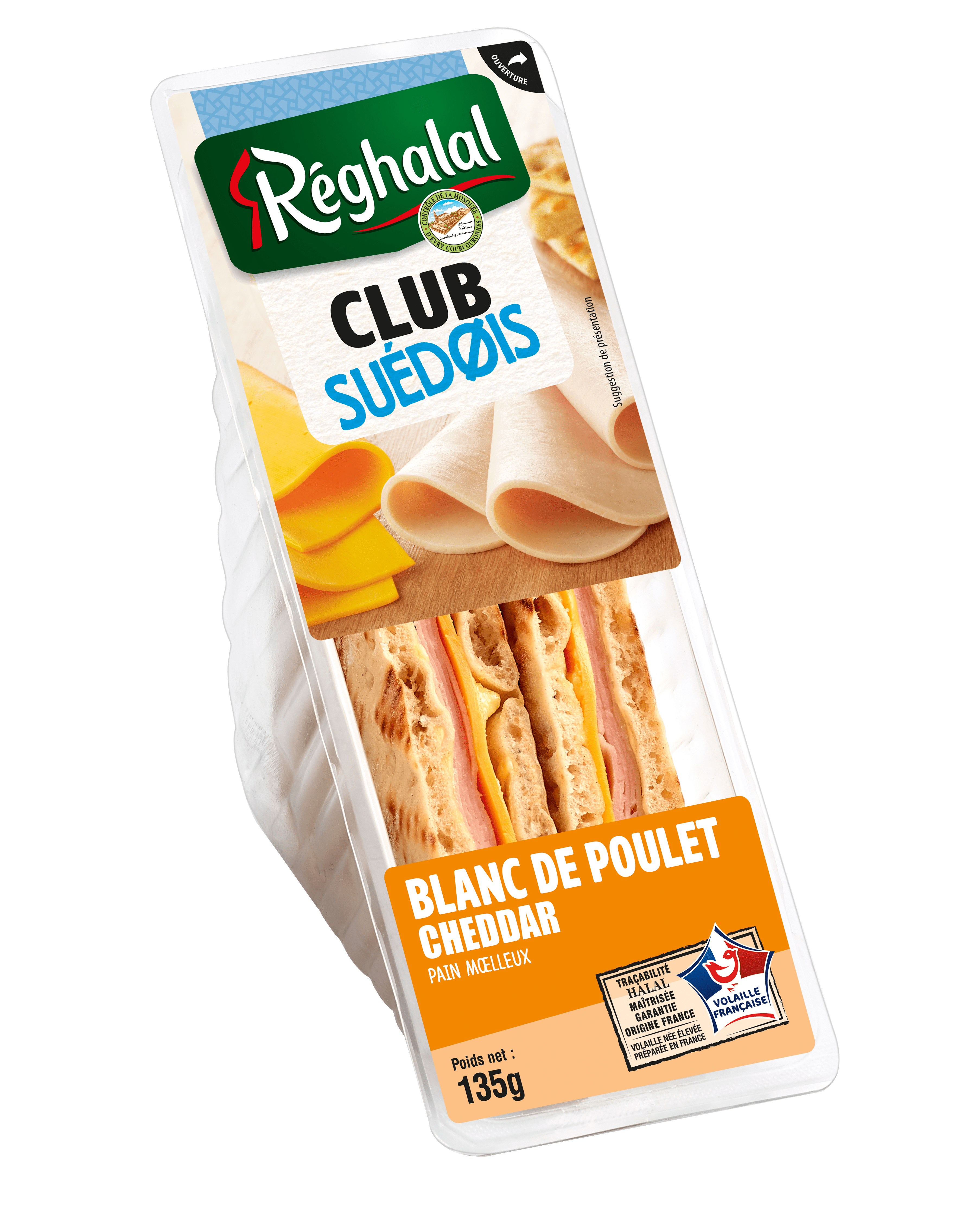 Réghalal sandwich suédois poulet cheddar 135gRéghalal sandwich suédois poulet cheddar 135g