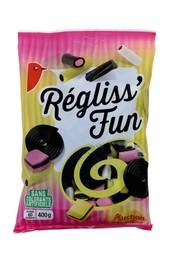 Mélasse de canne à sucre (contient SULFITES), farine de BLÉ, sucre, sirop de glucose, graisse de palme, sel, poudre de LAIT entier, extrait de réglisse 0.2%, gélatine de porc, arômes, huile végétale (coprah, colza), agent d'enrobage : cire de carnauba ; Colorants : curcumine, rouge de betterave. fabriqué avec des ingrédients ne provenant pas exclusivement de France.