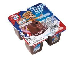 Dessert lacté gélifié au chocolat: Lait partiellement écrémé (80%), sucre, chocolat (sucre, pâte de cacao, beurre de cacao) (3%), cacao maigre, amidon modifié de pomme de terre, gélifiant : carraghénanes.