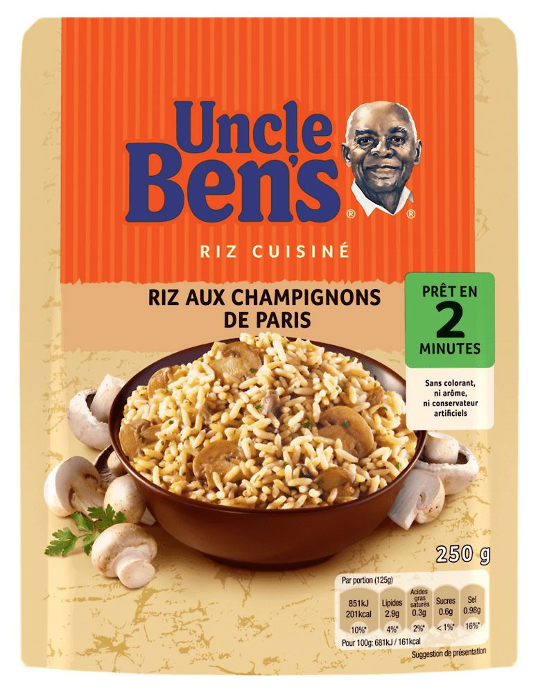 Riz micro-ondes aux champignons de Paris 2mn UNCLE BEN'SRiz micro-ondes aux champignons de Paris 2mn UNCLE BEN'S