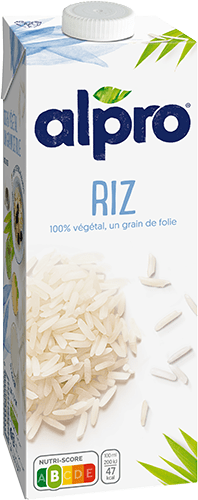 eau, riz (12%), huile de tournesol, orthophosphate tricalcique, maltodextrine, sel marin de table, stabilisant (gomme gellane), vitamines (B12, D2), correcteur d'acidité (phosphates de potassium)