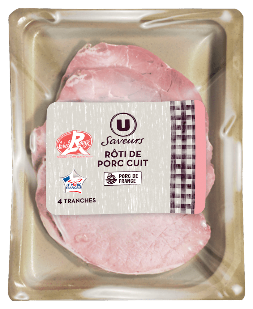 Roti de porc cuit label rouge U SAVEURS 4 tranches 180gRoti de porc cuit label rouge U SAVEURS 4 tranches 180g