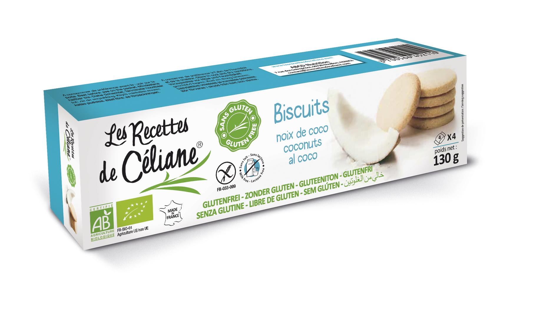 Farine de riz*, sucre de canne blond*, huile de palme non hydrogénée*, fécule de pomme de terre*, noix de coco râpée* 10.4%, sirop de glucose* (maïs), eau, sel, épaississant : gomme de guar*, émulsifiant : lécithine de tournesol, arôme naturel*. * ingrédients issus de l'agriculture biologique.