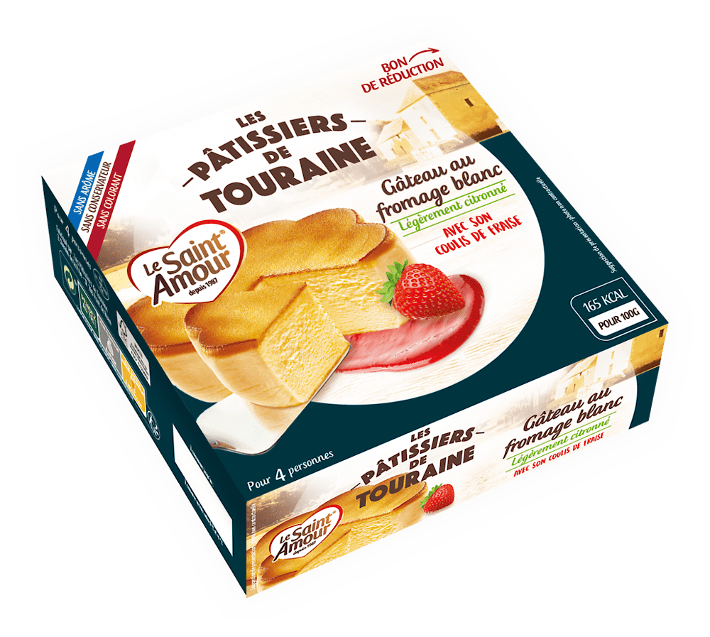 Ingrédients : gâteau au FROMAGE blanc (90%) : FROMAGE blanc (58%), sucre, blanc d'OEUF, farine de BLE, jaune d'OEUF, amidon modifié de maïs, concentré de citron. Préparation de coulis de fraises (10%) : fraises (60%), sucre, eau, gélifiant : pectine.
