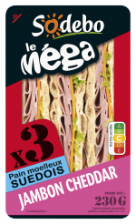 Sandwiches pain suédois jambon cheddar SODEBOSandwiches pain suédois jambon cheddar SODEBO