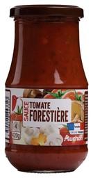 Purée et pulpe de tomates origine France 75%, légumes 9 % (oignons 5%, carottes 4%), champignons réhydratés 4,24% (bolets jaunes 3.24%, , champignons noirs 0.6%, cèpes 0.2% et girolles 0.2%), champignons de Paris 4%, huile de tournesol, sel, amidon transformé de maïs, sucre, épices et plantes aromatiques, arôme naturel de champignon, acidifiant : acide lactique.