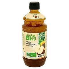 Huile de tournesol bio 40%, vinaigre de cidre bio 15,8%, jus de pomme concentré bio 13,2%, huile d'olive vierge extra bio 10%, moutarde de Dijon bio (graines de moutarde bio, vinaigre d'alcool bio, eau, sel), vinaigre d'alcool bio, vinaigre balsamique bio (vinaigre de vin bio, moût de raisin concentré bio), téguments de moutarde bio, sel.