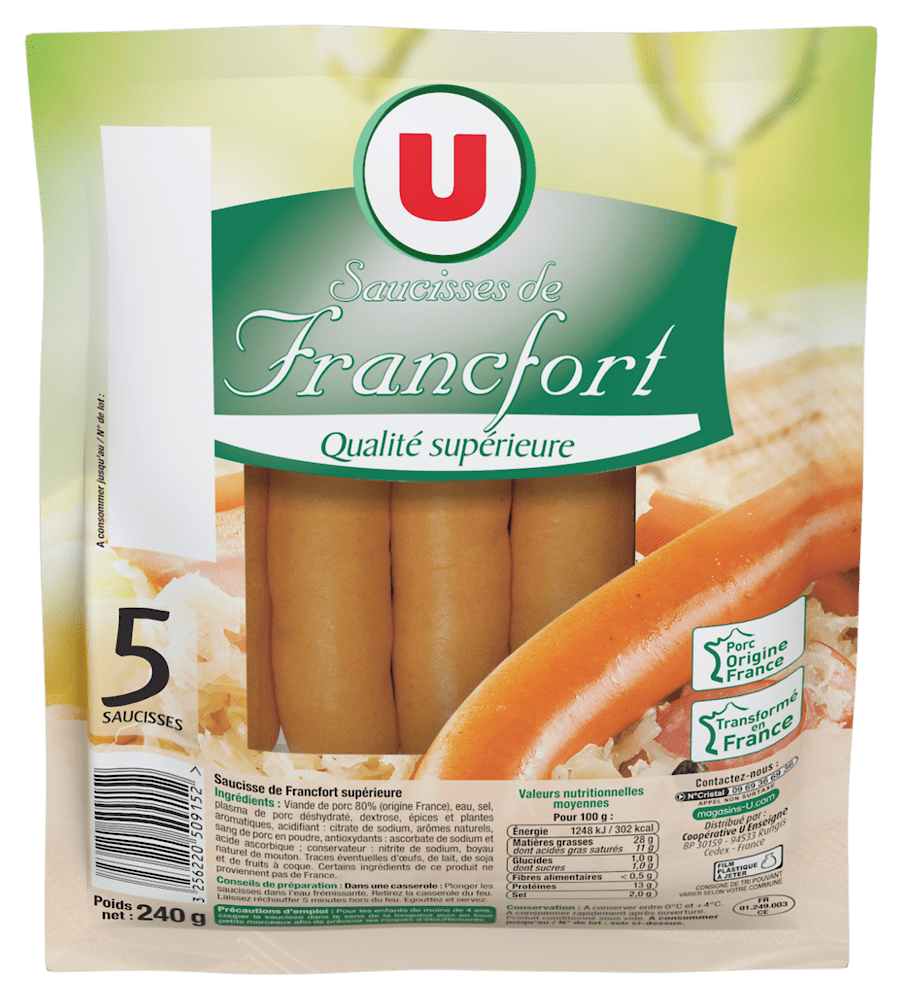 Saucisse de Francfort U X5 240gSaucisse de Francfort U X5 240g