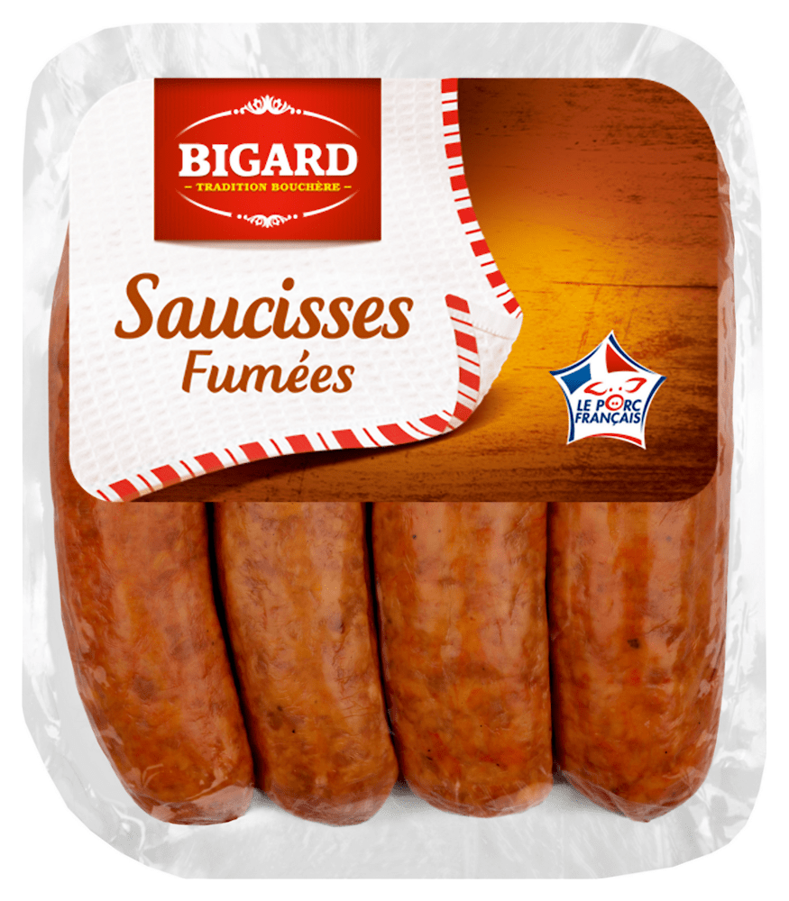 Viande de porc 88 %, gras de porc, eau, sel, sucres (dextrose, sucre), arômes naturels, épices, antioxydants : acide ascorbique, ascorbate de sodium, colorant : carmin de cochenille, curcumine. Boyau naturel de porc.