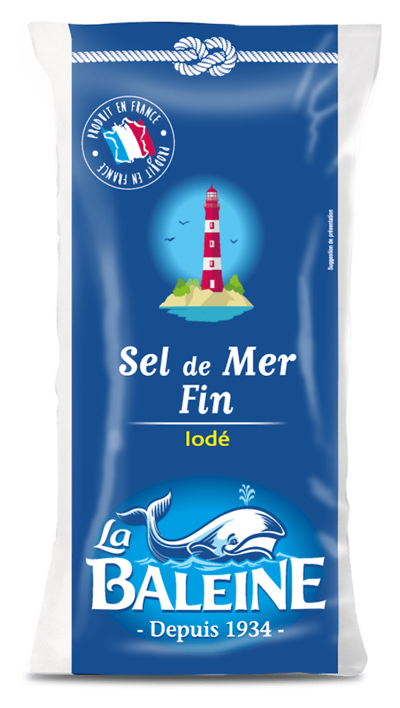 Sel de mer, iodure de sodium : 15 à 20 mg/kg (exprimés en élément iode), anti-agglomérant : E535