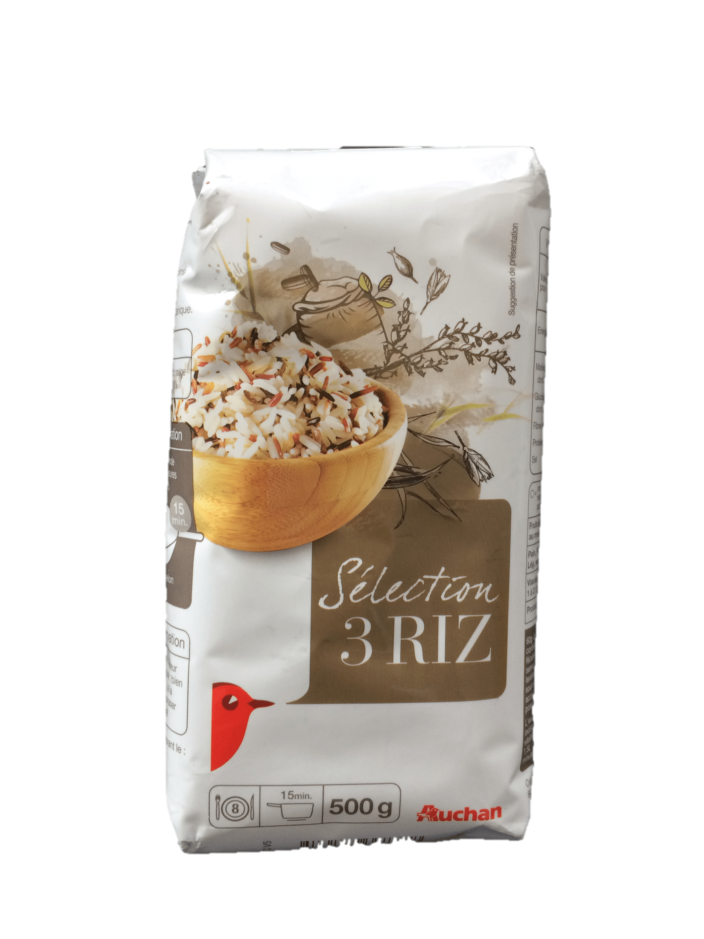 Riz long grain étuvé 77%, riz rouge complet 13%, riz sauvage 10%