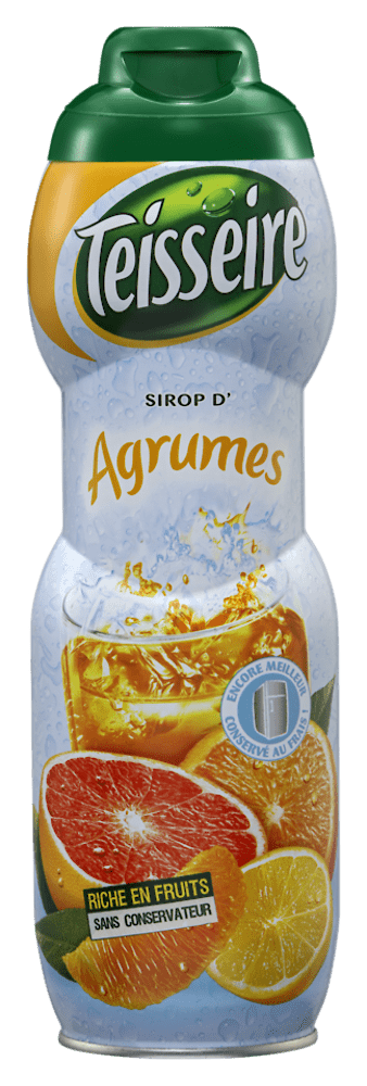 Sirop de glucose-fructose, sucre, jus d'agrumes à base de concentrés 20% (orange 7,5%, pamplemousse rose 6,7%, citron 5,8%), eau, acidifiant : acide citrique, arômes, colorant : extrait de paprika. * certains ingrédients de ce produit ne proviennent pas de France.