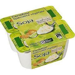 Tonyu 77.8% (eau, gaines de soja 6.7%), sucre 9.2%, mandarine 8%, citron vert 2%, amidon de maïs, phosphates de calcium, amidon modifié de maïs et de manioc, épaississants: pectines et farine de graines de caroube arôme naturel, sel, ferments.