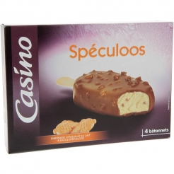 Enrobage de chocolat au lait 31,4% (sucre - beurre de cacao - protéines de lait - beurre concentré - pâte de cacao - lait écrémé en poudre - matière grasse végétale de coprah - émulsifiants : lécithines de soja, polyricinoléate de polyglycérol - arôme naturel de vanille) - lait écrémé - crème fraîche - morceaux de spéculoos 6,8 % (farine de blé - sucre - beurre - sirop de sucre candi - poudres à lever : carbonates de sodium, carbonates d’ammonium - sel - cannelle - émulsifiant : lécithines de tournesol) - sirop de glucose-fructose - morceaux de spéculoos enrobés 4,3% [spéculoos 2,4% (farine de blé - sucre - beurre - sucre brun - eau - sirop de sucre candi - poudre à lever : carbonates de sodium - farine de soja - sel - cannelle) - sucre - matière grasse végétale de coprah - cannelle - sel] - sucre - sucre candi - lactose et protéines de lait - eau - biscuit spéculoos  2,1% (farine de blé - sucre - beurre - œufs - sirop de sucre - sel - poudre à lever : carbonates de sodium - cannelle) - sirop de sucre candi - jaune d'œuf - colorant : caramel ordinaire - émulsifiant : mono-et diglycérides d'acides gras - stabilisant : alginate de sodium - arôme naturel de cannelle avec autres arômes naturels - sel - épaississant : gomme xanthane - acidifiant : acide citrique. Les informations en gras sont destinées aux personnes intolérantes ou allergiques.