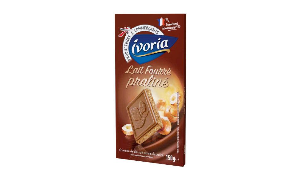 TABLETTE CHOCOLAT AU LAIT FOURRE PRALINE ET AUX ECLATS DE NOISETTESTABLETTE CHOCOLAT AU LAIT FOURRE PRALINE ET AUX ECLATS DE NOISETTES