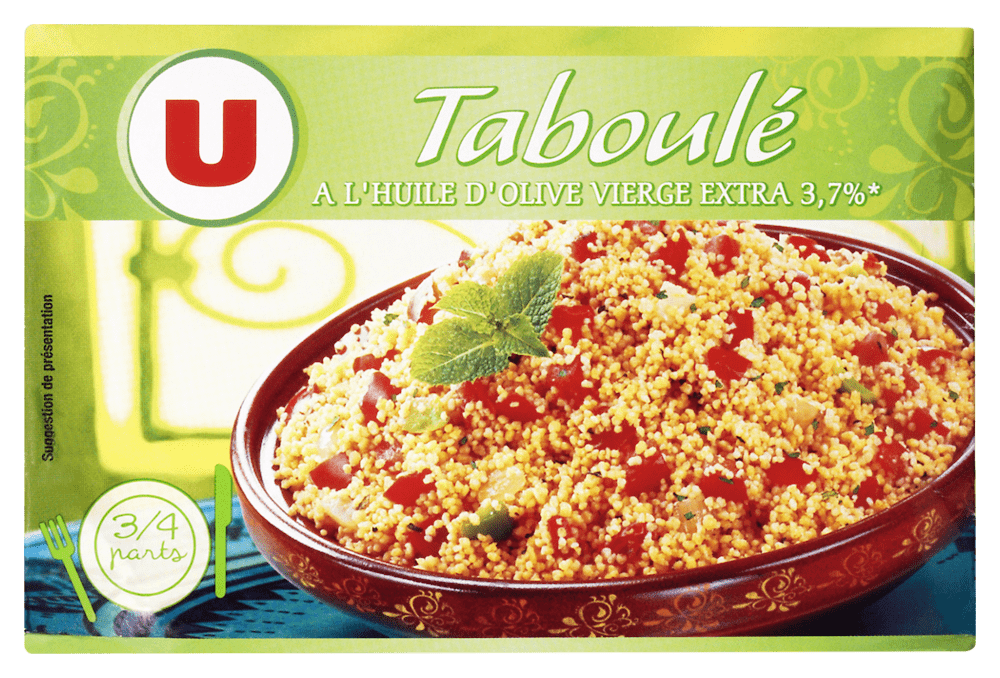 Garniture ( 550g) : tomate 60 % *, eau, oignon, poivron vert, huile d olive vierge 2.6 % *, menthe, jus de citron concentré, sel, persil, arôme naturel de poivre. Sachet de semoule (180g) : semoule de BLE dur précuite à la vapeur. * pourcentages exprimés sur la boîte de garniture