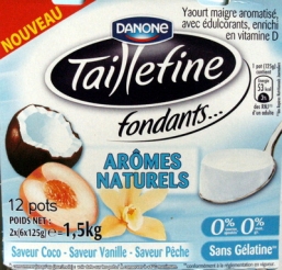 Taillefine (0 % MG, 0 % Sucres ajoutés), (Arômes naturels : Saveurs Coco, Vanille, Pêche) 12 potsTaillefine (0 % MG, 0 % Sucres ajoutés), (Arômes naturels : Saveurs Coco, Vanille, Pêche) 12 pots