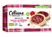 Ingredients : confiture extra de framboise* 44.5% (sucre de canne*, framboise* 21%, purée de citron*, épaississant : pectines), amidon de maïs*, fécule de tapioca*, farine de maïs*, sucre de canne blond*(1), margarine végétale* (beurre de karité*, huile de tournesol*, eau, sel, jus de citron concentré*), sirop de glucose* (maïs), fécule de pomme de terre*, huile de tournesol*, épaississants : gomme guar* et xanthane, sel marin, émulsifiant : lécithines* (tournesol), poudres à lever : carbonates d’ammonium. *ingrédients issus de l’agriculture biologique. Allergènes : sans gluten, sans lait, sans lactose. sans gluten