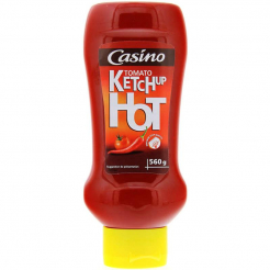 Eau - purée de tomate double concentrée 22% (123g de tomates fraîches dans 100g de ketchup) - sucre - vinaigre d'alcool - amidon modifié de maïs et de pomme de terre - sel - épices (contient MOUTARDE) - extrait d'épice - ail déshydraté.