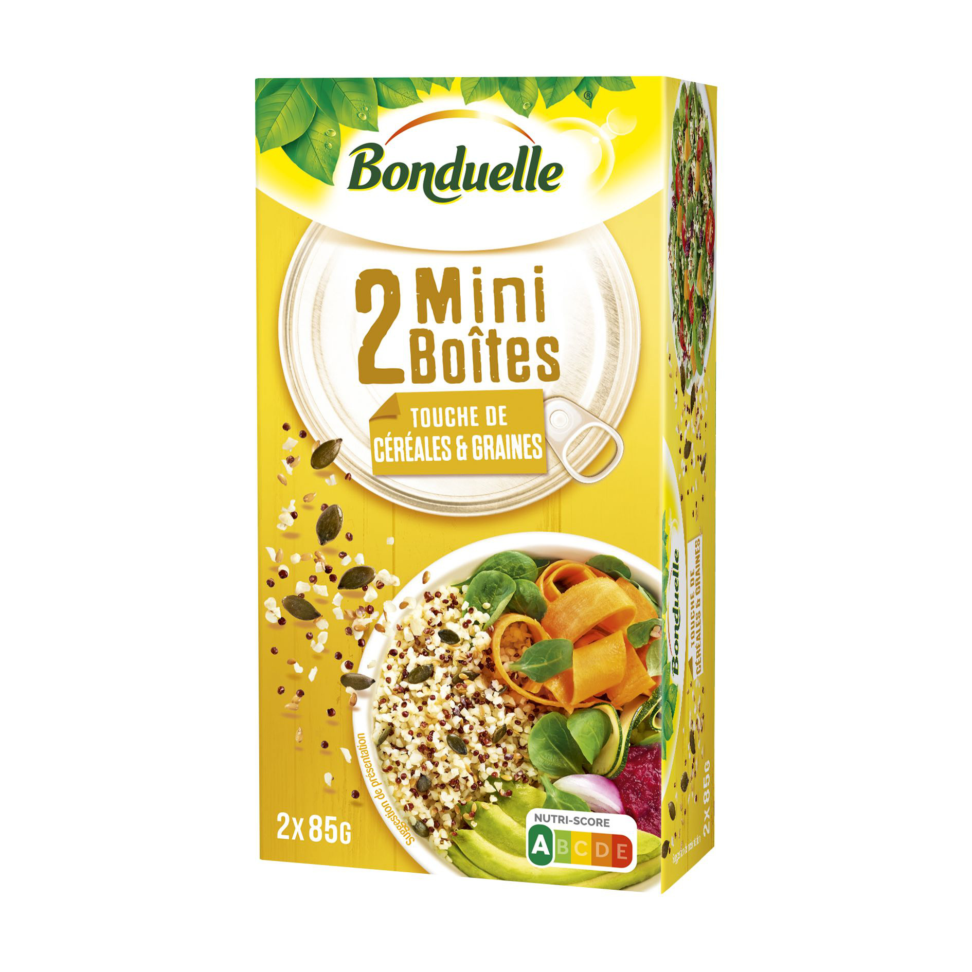 Eau, boulgour (blé dur précuit) 27%, quinoa rouge 11%, graines de courge 4,7%, graines de lin doré 3,8%, sel.