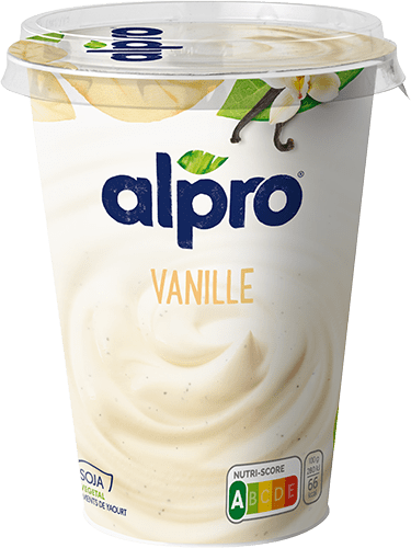 eau, fèves de SOJA décortiquées (9,9%), sucre, stabilisant (pectines), phosphate tricalcique, correcteurs d'acidité (acide citrique, citrates de sodium), extrait de carotte, sel marin, arôme naturel de vanille, arômes, vanille en poudre (0,03%), antioxygènes (extrait riche en tocophérols, esters d'acides gras de l'acide ascorbique), vitamines (B2, B12, D2), ferments de yaourt (S. thermophilus, L. bulgaricus)