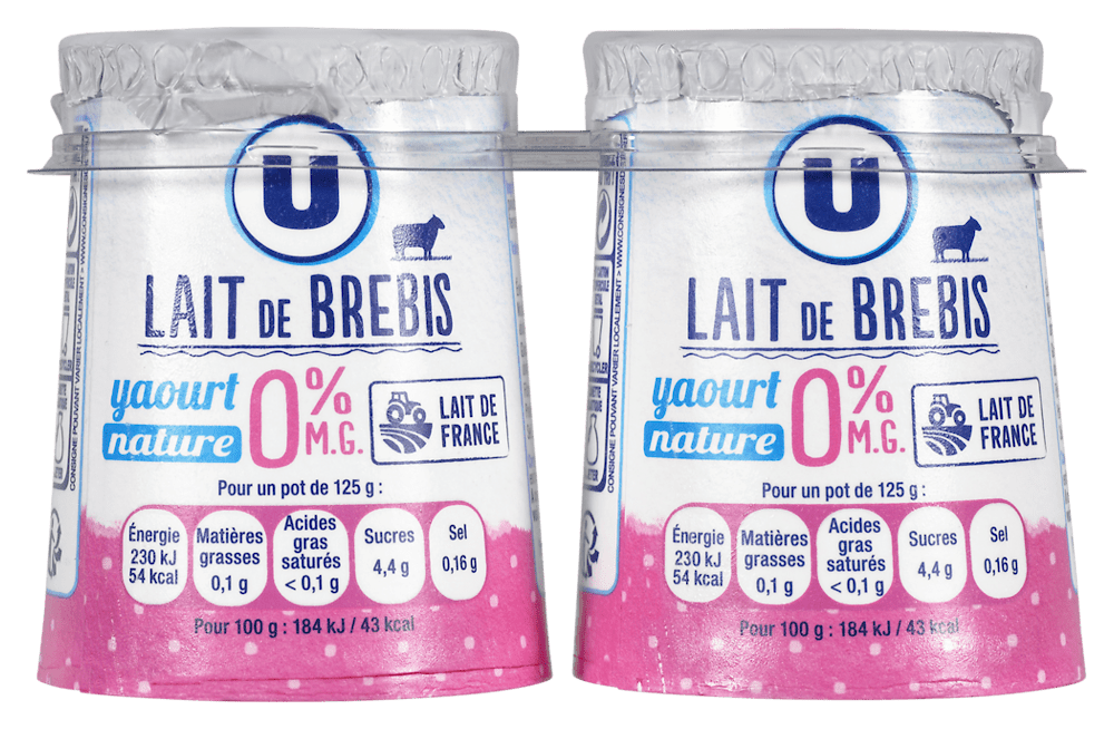 Yaourt maigre au lait de brebis nature U 0%mg 2x125gYaourt maigre au lait de brebis nature U 0%mg 2x125g