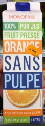 100% Pur Jus fruit pressé Orange sans pulpe - flash pasteurisé