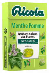Isomalt, extrait (0,8%) de menthe pomme et du mélange de 13 plantes ricola, acidifiants (acide malique, acide citrique), arôme naturel, édulcorants (aspartame, acésulfame-k), concentré de jus de citron, arôme naturel de menthes, colorant (E 141)