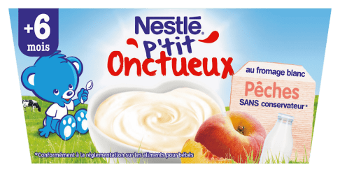 NESTLE P'TIT ONCTUEUX au Fromage Blanc Pêche - 4 x 100g - Dès 6 mois