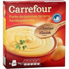 Purée de pommes de terre en flocons: pommes de terre déshydratées 99%, émulsifiant : mono- et diglycérides d'acides gras, stabilisant : diphosphate disodique, extrait d'épices, antioxydants : palmitate d'ascorbyle et acide ascorbique, acidifiant : acide citrique.
